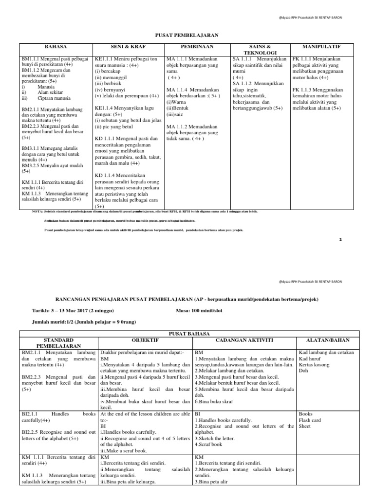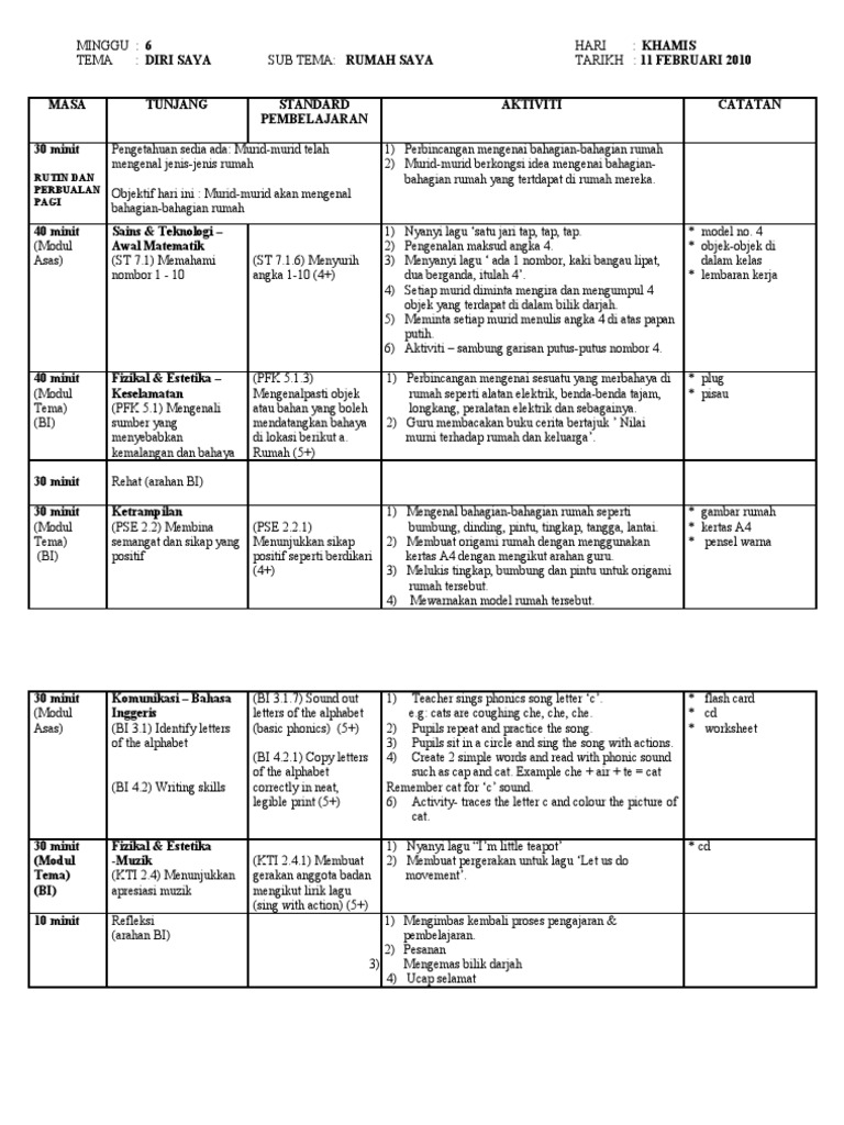 Contoh Rancangan Pengajaran Harian Prasekolah Kspk Turnercxt